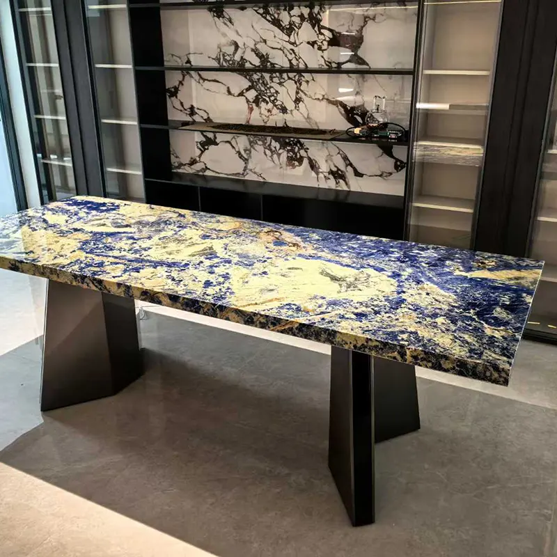 Granit är unik i heminredningsindustrin på grund av sin långsamma kylningsprocess. Bolivia Blue Granite, en slående sten från Bolivia, är ett sydamerikanskt land som gruvor Blue Sodalite. Dess fridfulla blågrå nyans och mörka sodalitlinjer är slående. Varje platta är unik och liknar Andesbergen. Med sin högsta hårdhet och seghet kan den tåla daglig användning utan problem.