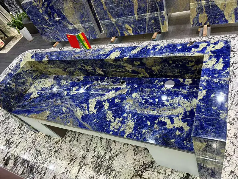 Eftersom Bolivia Blue Granite är ett tecken på god smak, älskar designers och husägare att använda den. Att använda naturlig blå granit gör att ditt hus ser mer överdådigt och livligt ut. Det går bra med vardagsrummet, matsalen, köket och badrummet. För en lätt och luftig effekt kan den kopplas ihop med stenar som är lätta i färg, som beige eller vit. Det kan också kopplas ihop med mörka stenar som grå eller svart för ett mogenare och mörkt utseende. Bolivia Blue Granites coola sodalitlinjer och blågrå nyans skiljer den från andra graniter. Det har varit en favorit så länge på grund av detta. Det förblir vattenbeständigt i toaletten. Det är både praktiskt och attraktivt i köket. Det är också det första som folk märker i vardagsrummet.