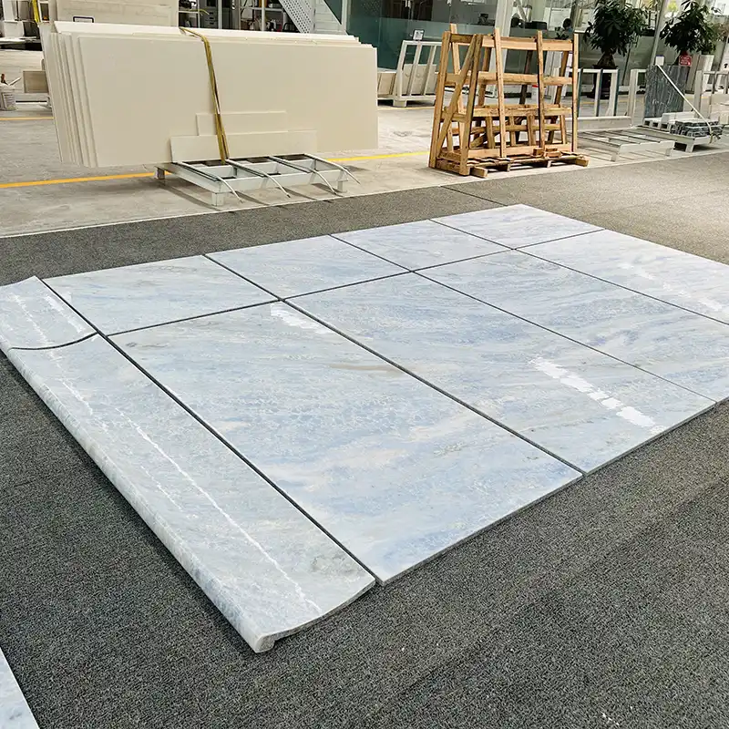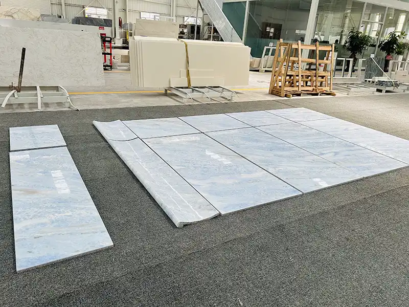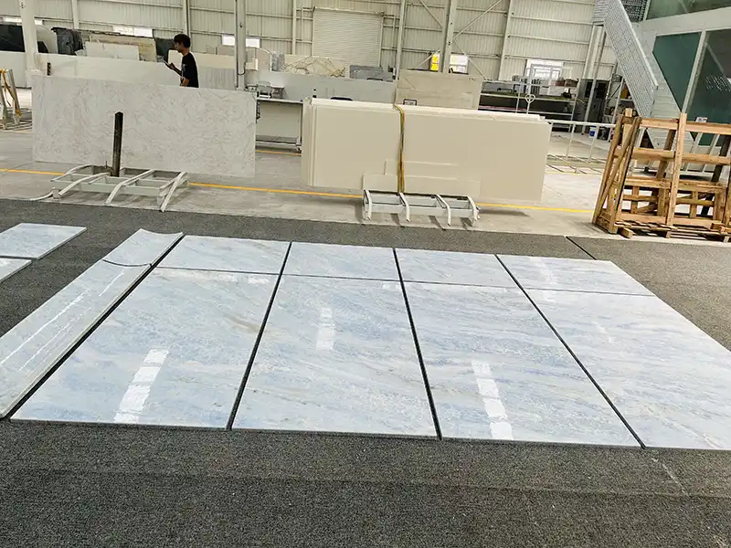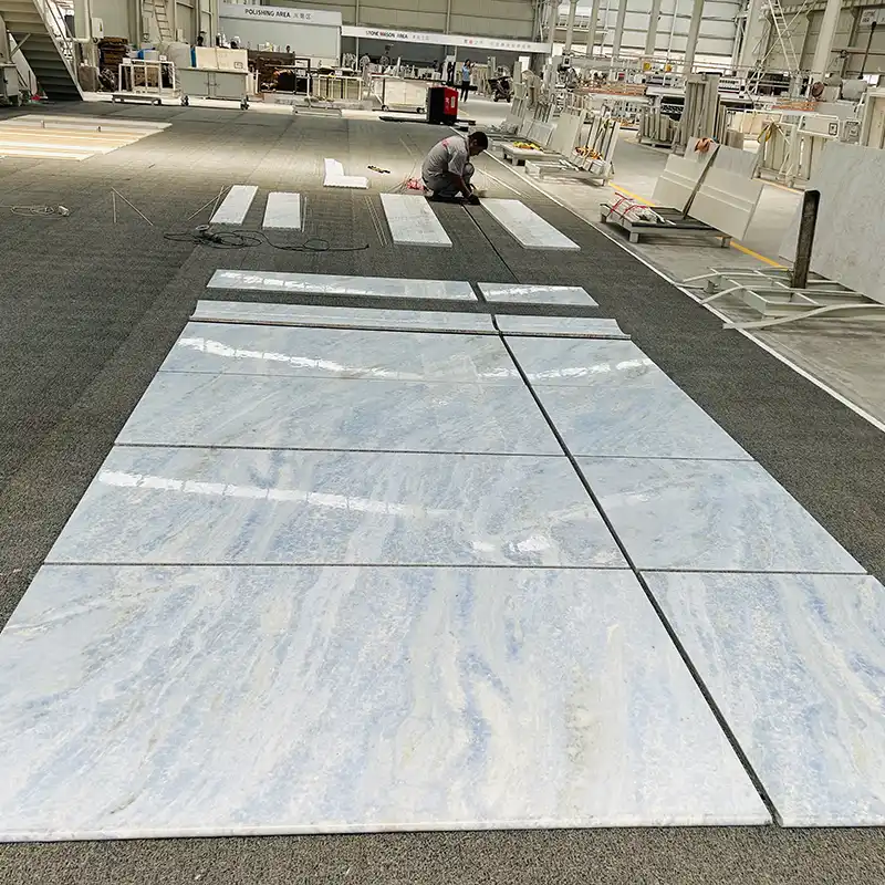 Calcite Blue Extra marmorväggplattor har en ljus, färsk blå färg med balanserad, kristallliknande venning, till skillnad från många mörkare eller alltför mönstrade blå kulor. Det får insidan att känna sig lättare och lugnare medan den fortfarande ser stilig ut.