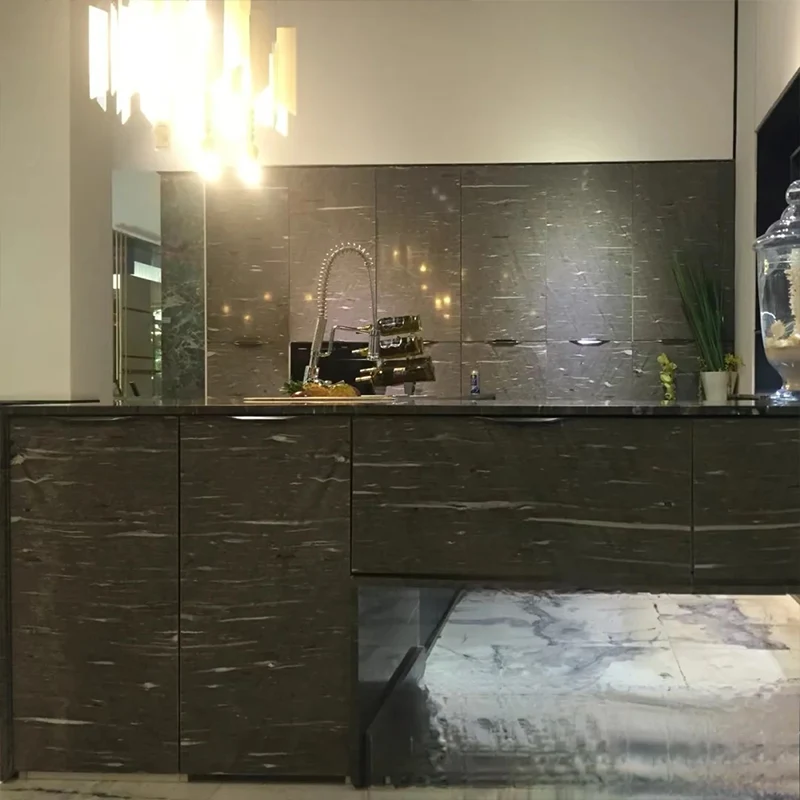 Black Silk Granite är ett speciellt material för avancerad inredning, eftersom dess mörka svarta färg kontrasterar elegant med silver och vit vening.