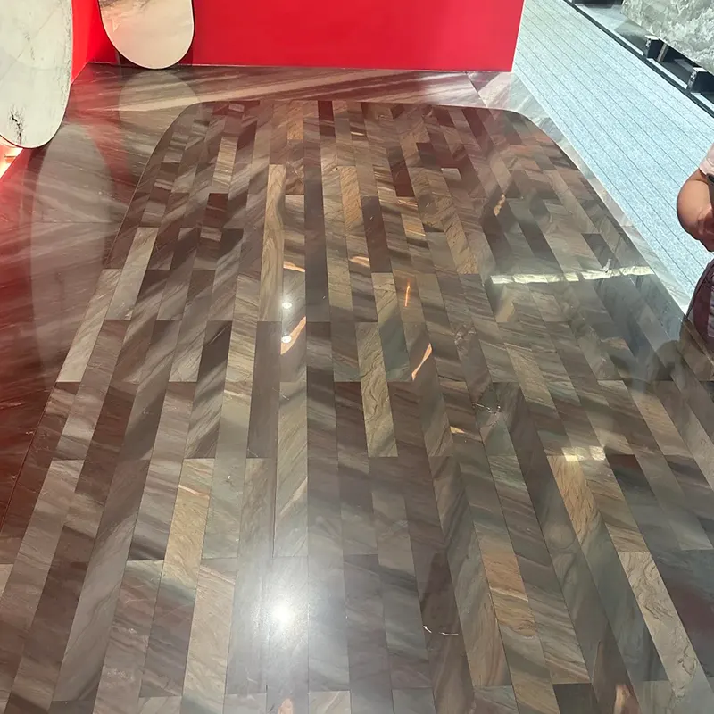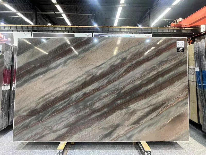 Elegant Brown Quartzite är en fängslande natursten stenbrott i Brasilien. Dess distinkta rödbruna ränder, som liknar penseldrag, lägger djup och karaktär på ytan. Den varma, rika färgen utstrålar elegans och lyx, vilket gör det till en favorit för att skapa visuellt fantastiska inre utrymmen. Den harmoniska blandningen av grå, ljusgrön och svart bidrar till dess lockelse. Produktnamn: Elegant brun kvartsitplatta Fabrik: Xiamen Wow Stone Co., Ltd. Ursprungsland: Brasilien MOQ: 1 st Ytan: polerad, finslipad Användningar: Mångsidig för inre och yttre dekoration, vanligtvis används i vägg- och golvplattor, bänkskivor, fåfänga toppar, trappor, kolumner, mosaiker och mer, vilket gör det idealiskt för olika konstruktions- och designprojekt.