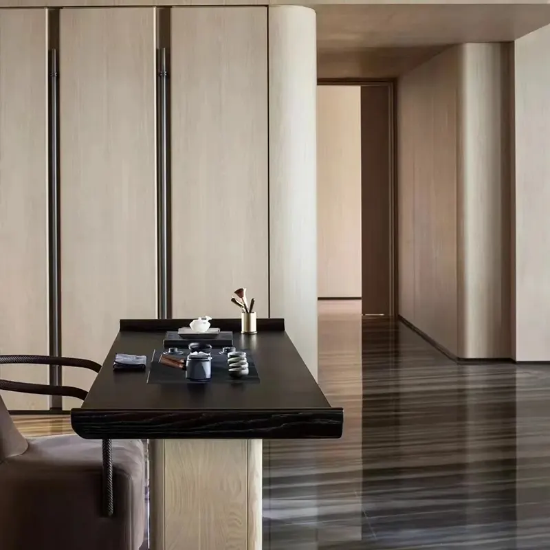 Dark Brown Quartzite är ett vanligt verktyg för designers som harmoniserar med träelement eller lägger till kontrast till ljusa teman. Att kombinera naturlig kvartssten med bleka skogar och vita väggar i skandinaviska hus ger ett sofistikerat och fridfullt utrymme. För dramatisk påverkan på djärva interiörer, blanda svarta eller djupa gröna skåp med brasilianska kvartsitplattor.
