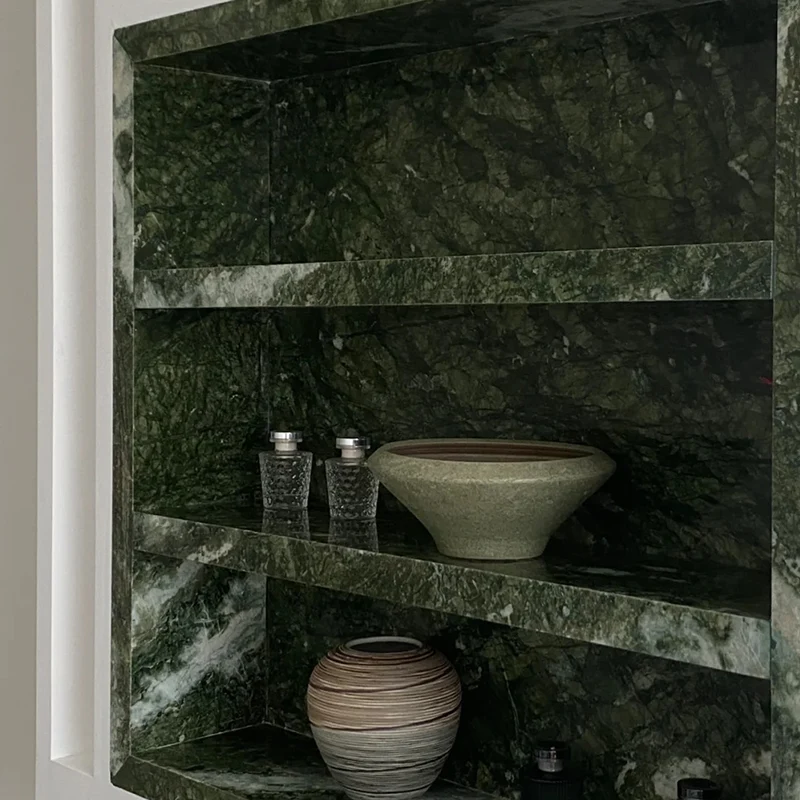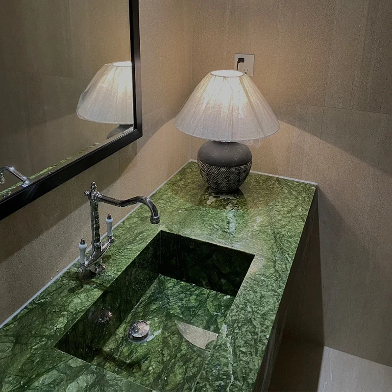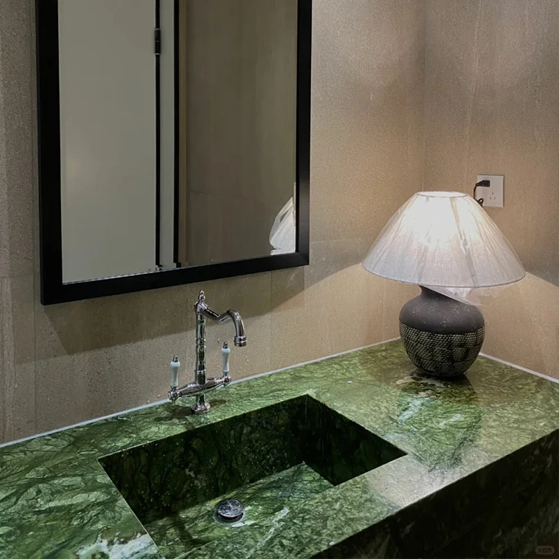 Ming Green Marble -plattor används vanligtvis för väggar och golv, där deras lugnande gröna färger ger lugn och gästfrihet. Med denna marmor läggs en ny och fantastisk funktion, till antingen lobbyn på ett lyxhotell, vardagsrum i ett snyggt hem eller badrum i ett spa.