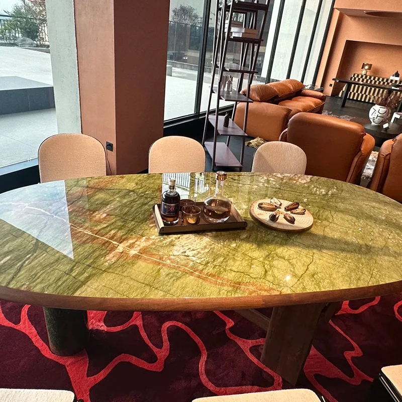Anpassade designelement: Bänkskivor, bord, bänkar, skulpturer eller andra specialstycken kan ge varje hemmosfär en ovanlig och exklusiv egendom av Ming Green Marble.