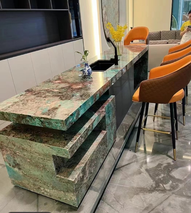 Varje platta vi säljer har ett tydligt naturligt mönster, så inga två bitar är lika. Detta gör varje projekt distinkt. När vi har vår egen fabrik och lager har vi kontroll över alla processer som sträcker sig från val av rå sten till exakt skärning och efterbehandling. Att ha erfarenhet av år i bearbetningkvartsit, marmor och granit, vår personal försäkrar att kunderna kommer att få teknisk excellens tillsammans med estetisk överklagande.