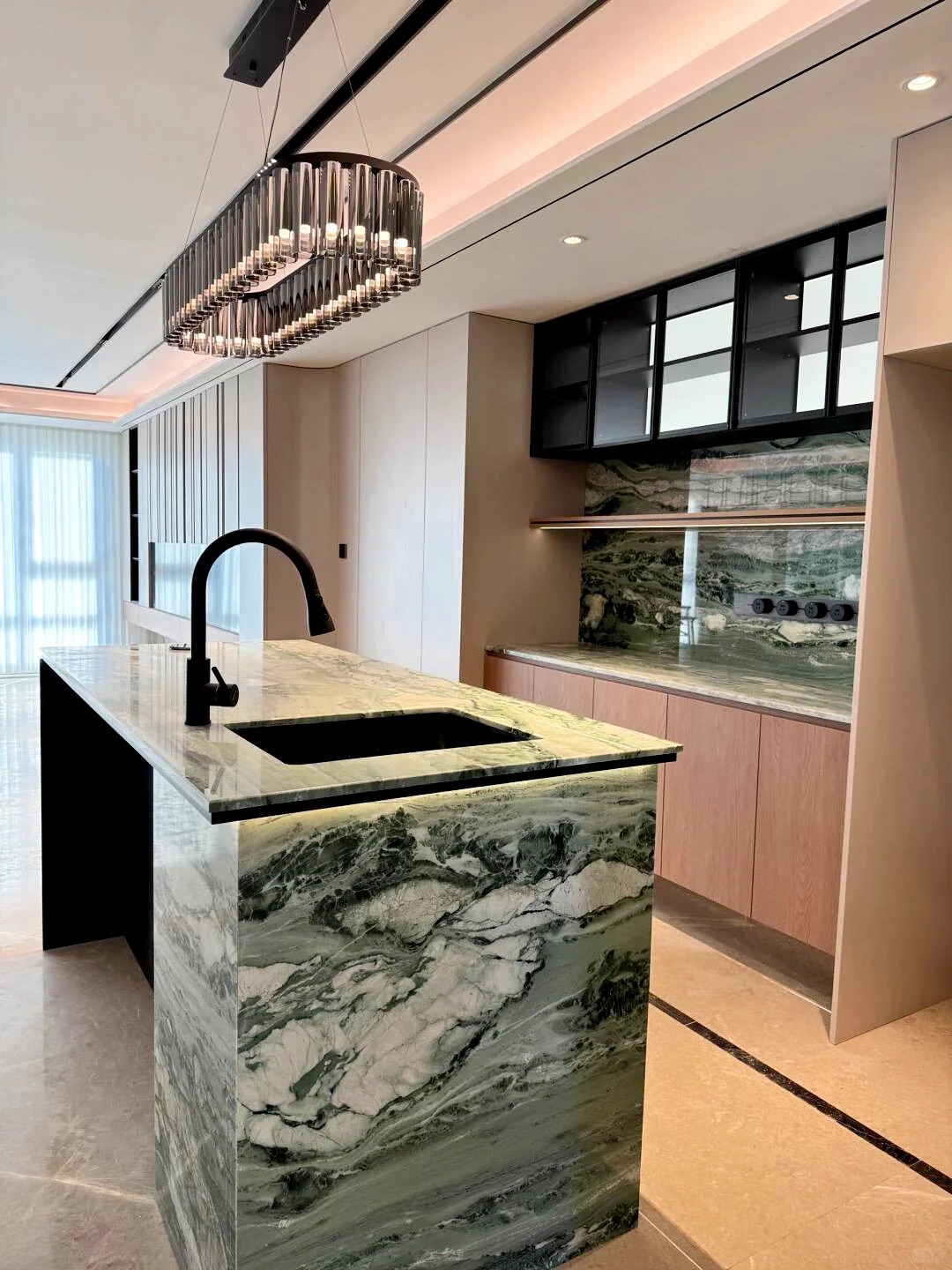 Våra designkonsulter kommer att rekommendera den mest lämpliga stenen för din köksö eller anpassade marmor bordsskiva. Du kanske vill övervägaCalacatta lila marmorför en dramatisk effekt. Alternativt kan Verde Alpi -marmor vara idealisk för ett djärvt utseende. Vi förstår att alla projekt inte är desamma och därför gör vi allt för att uppfylla dina individuella krav i vår stentoppproduktion.