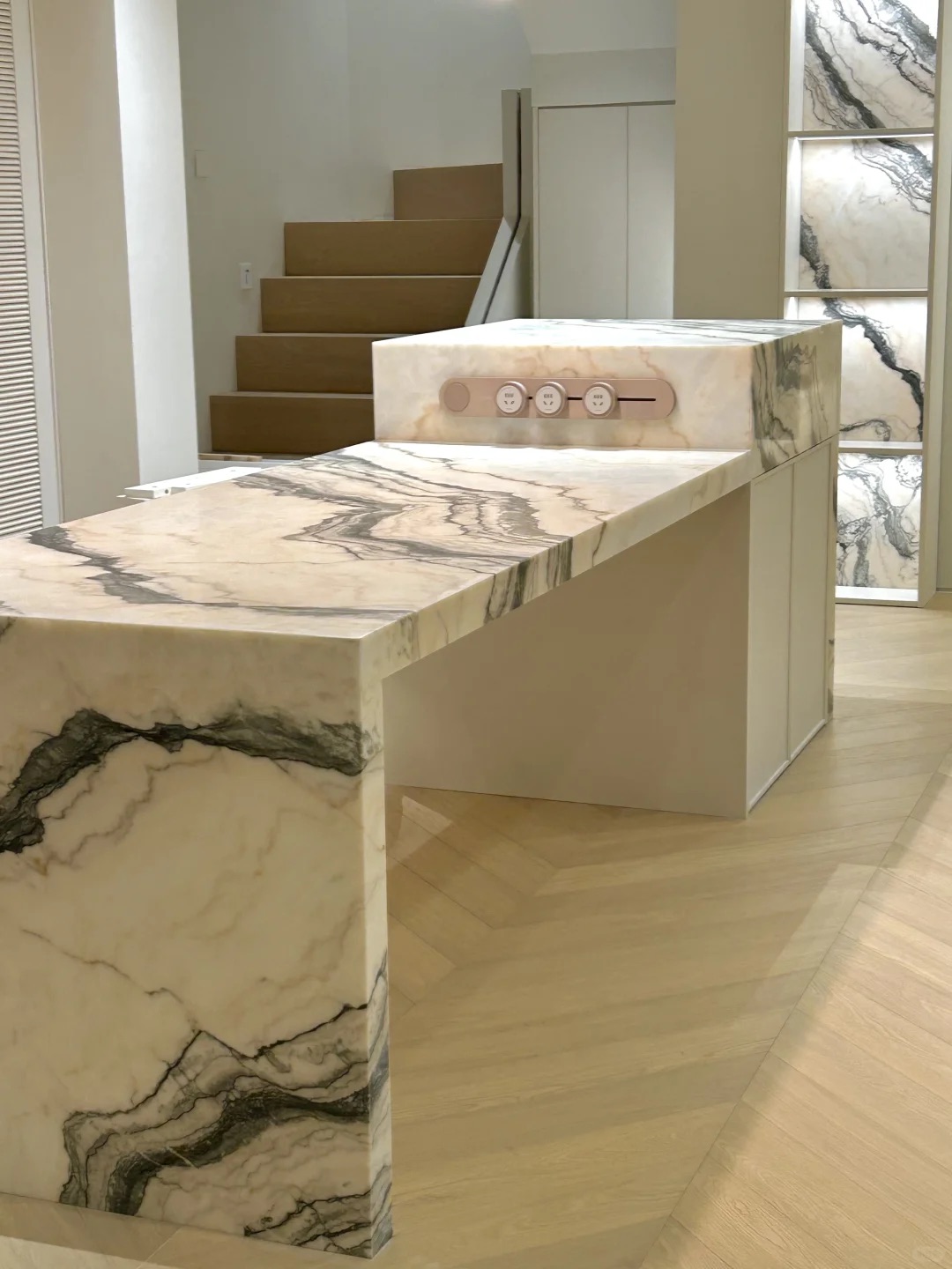 Wow Stone är ett företag som är specialiserat på att föra skönheten i naturlig marmor till hem över hela världen. Vi har mer än 10 000 kvadratmeter naturliga marmorplattor i lager och en fabrik som fokuserar på precisionshantverk. Vi kan göra anpassade bänkskivor åt dig.