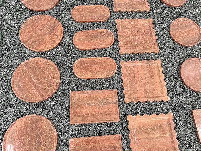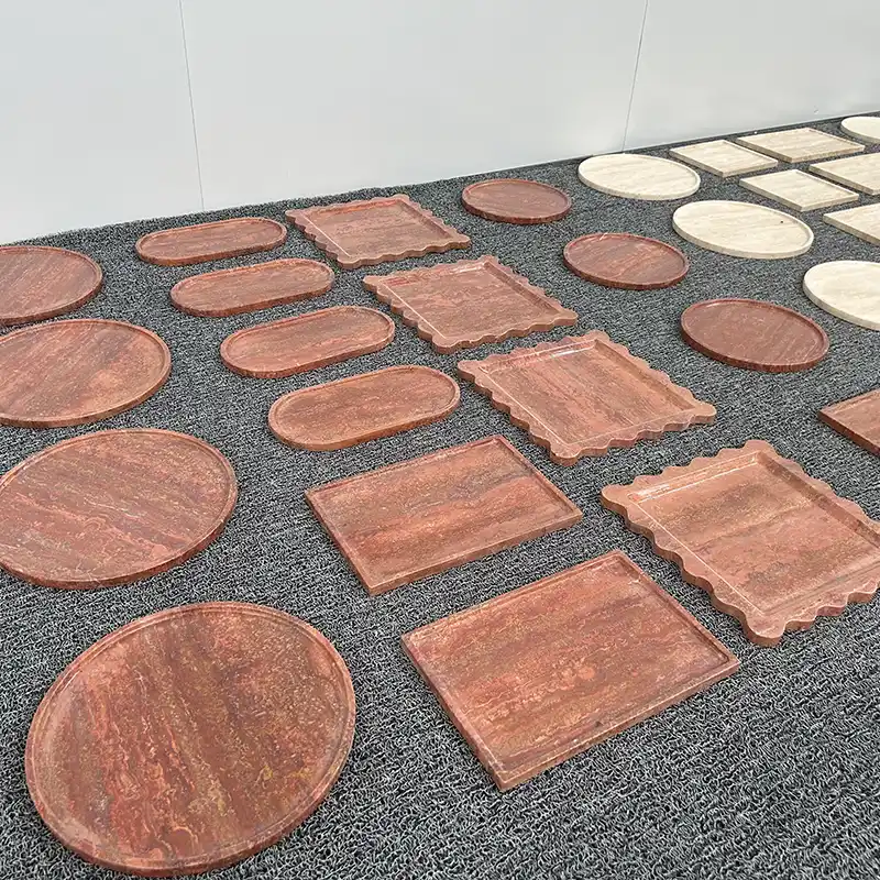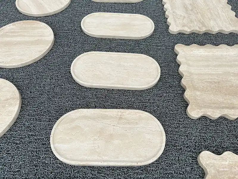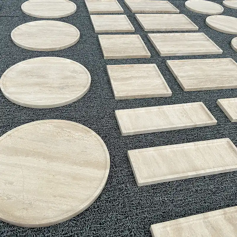 Rund travertinbricka, oval travertinbricka, stor rund travertinbricka, kammad travertinbricka, litet travertinbricka, etc., är bara några av de många former och storlekar av travertinbrickor. Anpassade storlekar och kantprofiler erbjuds också av leverantörer som WoW Stone.