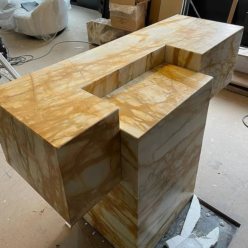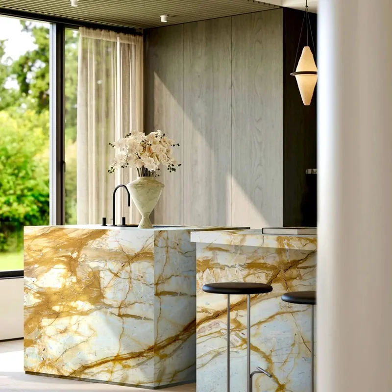 USA och Kanada: Föredrar rektangulära guldmarmorkonsolbord och polerade bänkskivor för guld marmor.